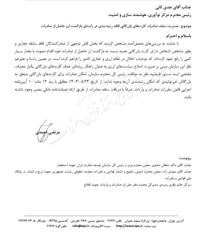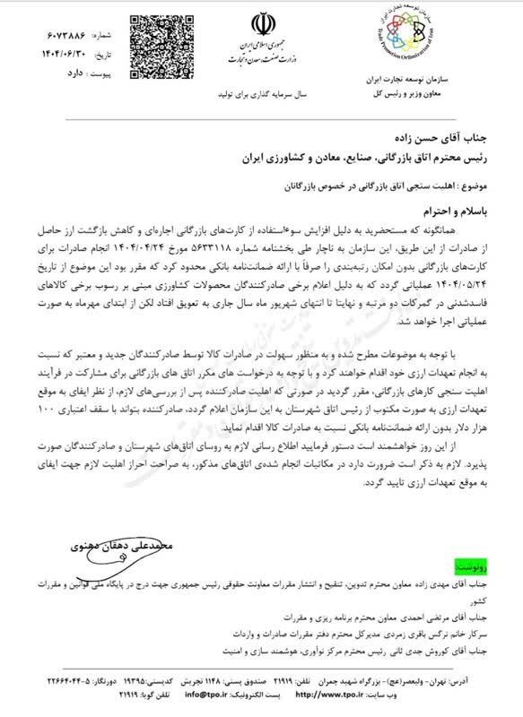 به گزارش تجارت، معدن و فولاد: بر اساس مفاد این بخشنامه، صادرات با استفاده از کارتهای بازرگانی فاقد رتبهبندی صرفاً با ارائه ضمانتنامه بانکی مجاز خواهد بود.