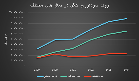 بر این اساس، با ۳۷۸ هزار و ۶۱۵ میلیارد ریال در کنار ۶۰۹ هزار و ۷۰۶ میلیارد ریال شش ماهه نخست سال جاری، کگل ظرف ۹ ماه میتواند به درآمدی بیش از سال ۱۴۰۳ دست یابد. همچنان که این شرکت در دورههای گذشته نیز روند رو به رشدی در فروش خود داشته است. شرکت معدنی و صنعتی گلگهر در سال ۱۳۹۹ درآمد ۳۲۲ هزار و ۴۵۴ میلیارد ریالی کسب کرد و در سال ۱۴۰۰ با رشد ۵۲ درصدی به ۴۹۰ هزار و ۸۷۵ میلیارد ریال دست یافت.