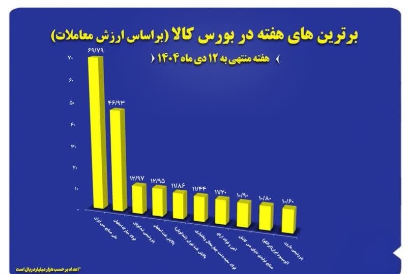 به گزارش تجارت، معدن و فولاد: آمار معاملات بازار فیزیکی بورس کالای ایران در هفته منتهی به ۱۲ دیماه از معامله بیش از ۲ میلیون و ۲۶۶ هزار تن انواع کالا به ارزش بالغ بر ۵۵.۵ هزار میلیارد تومان حکایت دارد؛ جایی که ۱۰ شرکت برتر سهمی بیش از ۲۰.۹ هزار میلیارد تومان از ارزش معاملات را به خود اختصاص دادند.